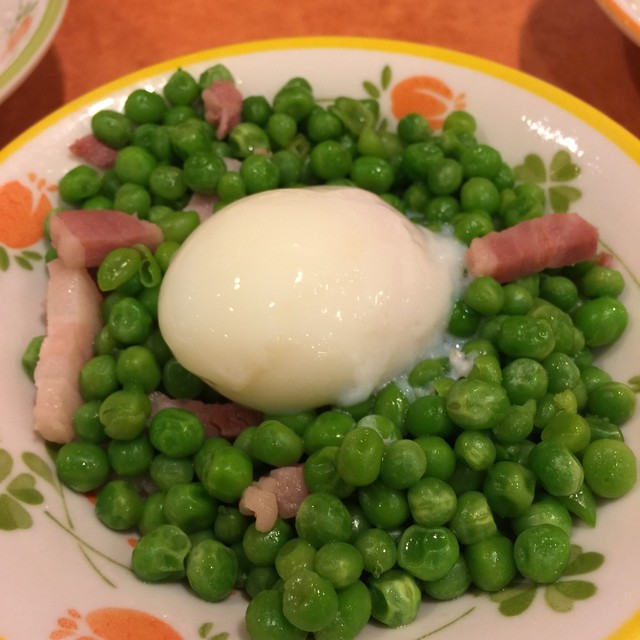 青豆の温サラダとディアボラハンバーグとミラノ風ドリアでSTOPです