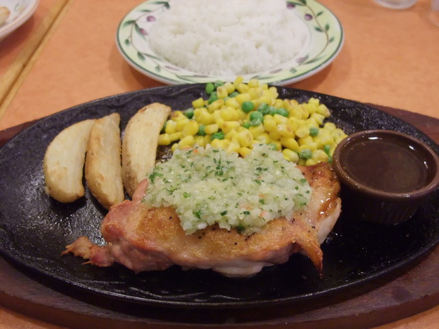 コーンクリームスープ、若鶏のグリル、スモールライス、ドリンクバーで1000円行かない。便利だ。
