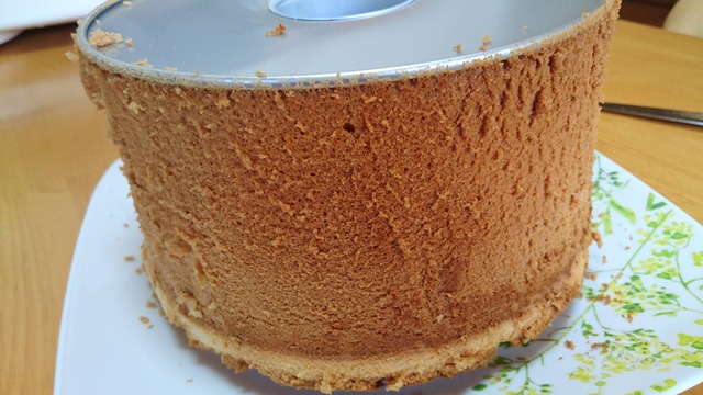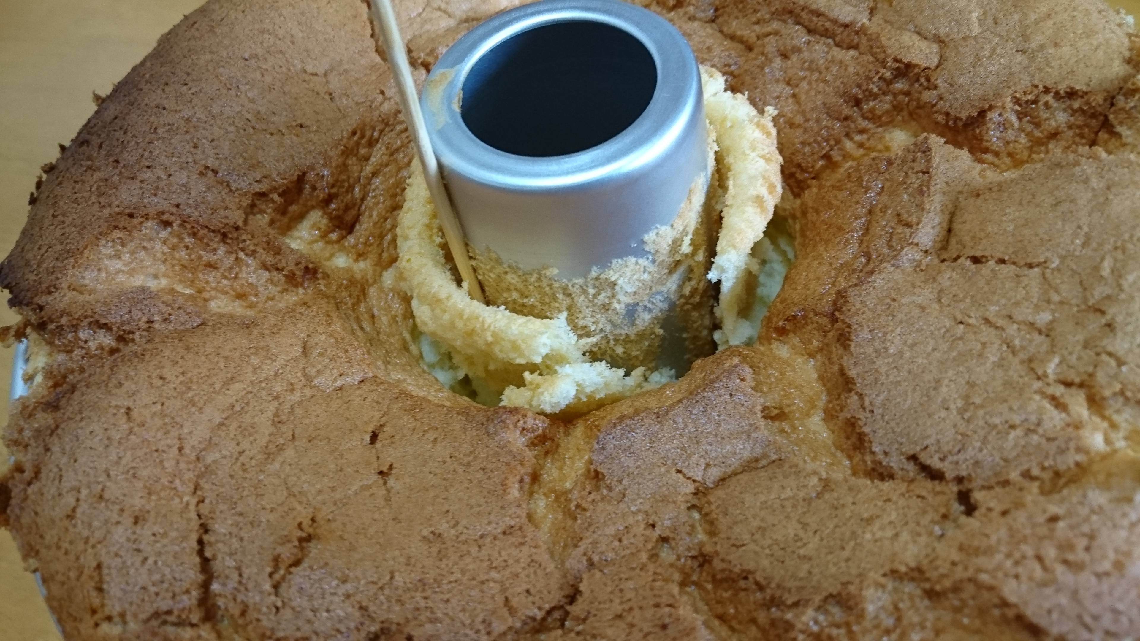 専用?のシフォンケーキナイフ使うと綺麗にはずせるね。