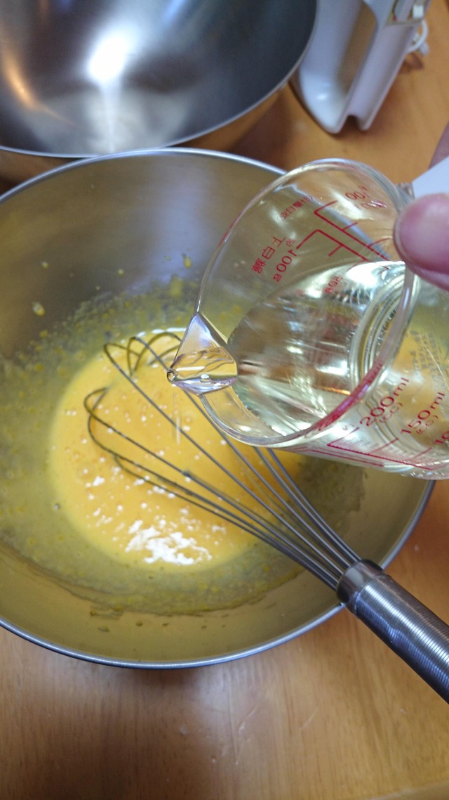 さて、ここからはハンドミキサーで卵白を泡立てていきます