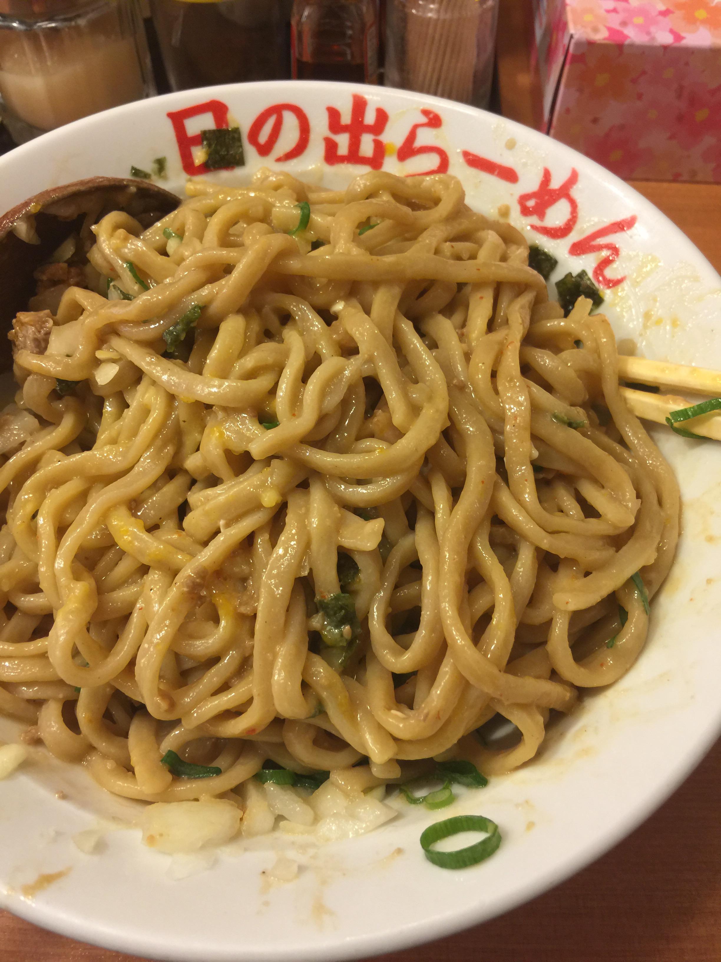 油と醤油ベースのタレがワシャワシャの太麺にまったりと絡んで、かなりのパンチある味でした