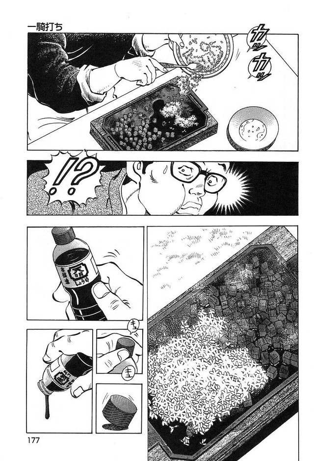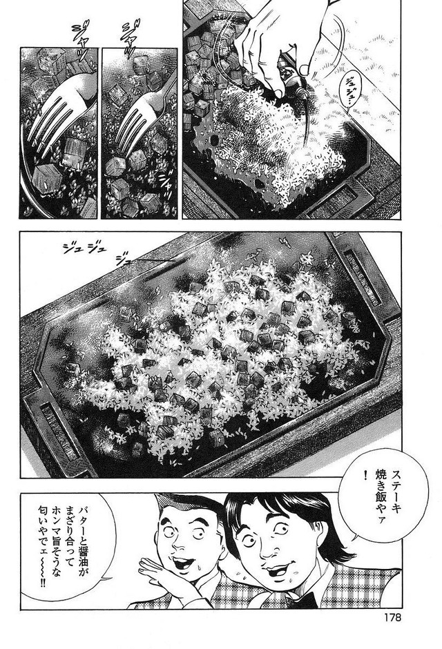 この漫画の邪道食いって、水と一緒にミキサーにかけてジョッキで飲むとかだから、主人公が多少変な事やっても美味しく食べてるように見えるというね