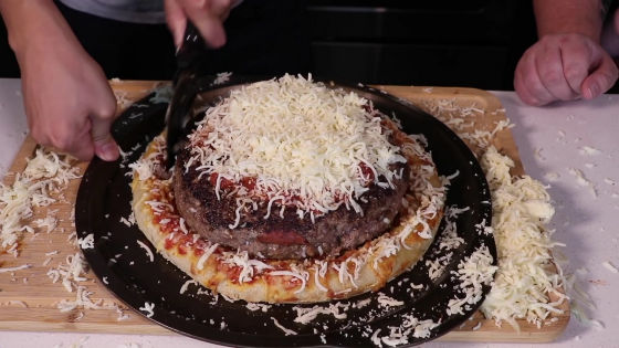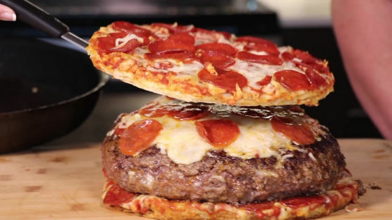 ピザを入れたハンバーグをピザで挟んだハンバーガーが入ったハンバーグを・・