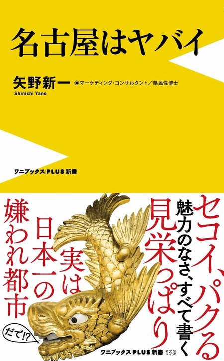 冒頭からかなりの自虐で入っている『名古屋はヤバイ』(矢野新一/ワニブックス)。本書は、県民性研究の第一人者であり、名古屋を知り尽くした矢野新一氏が、ちょっと残念な名古屋の一面を紹介している一冊。