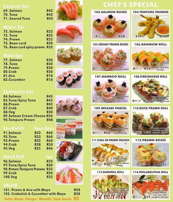 ケープタウンにある「アオモリスシ」のメニュー 普通に旨そう