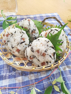 細かく刻んだかりかり梅とひじきの混ぜご飯