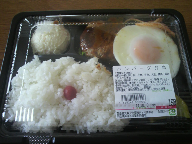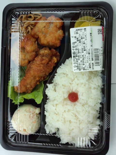 198円弁当の売れ残りに半額のシールが貼ってあった。
