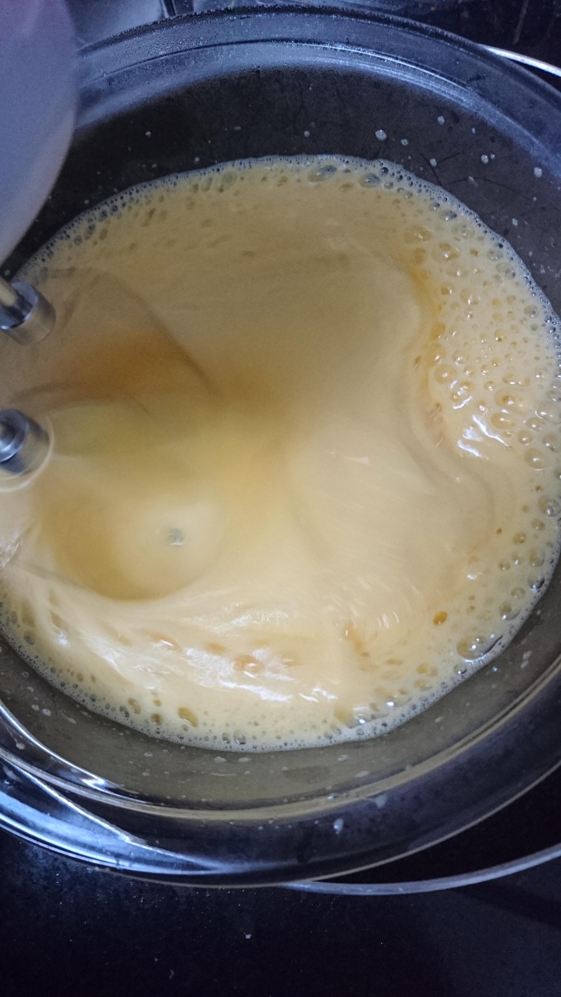 湯煎しながらたまごを泡立てる