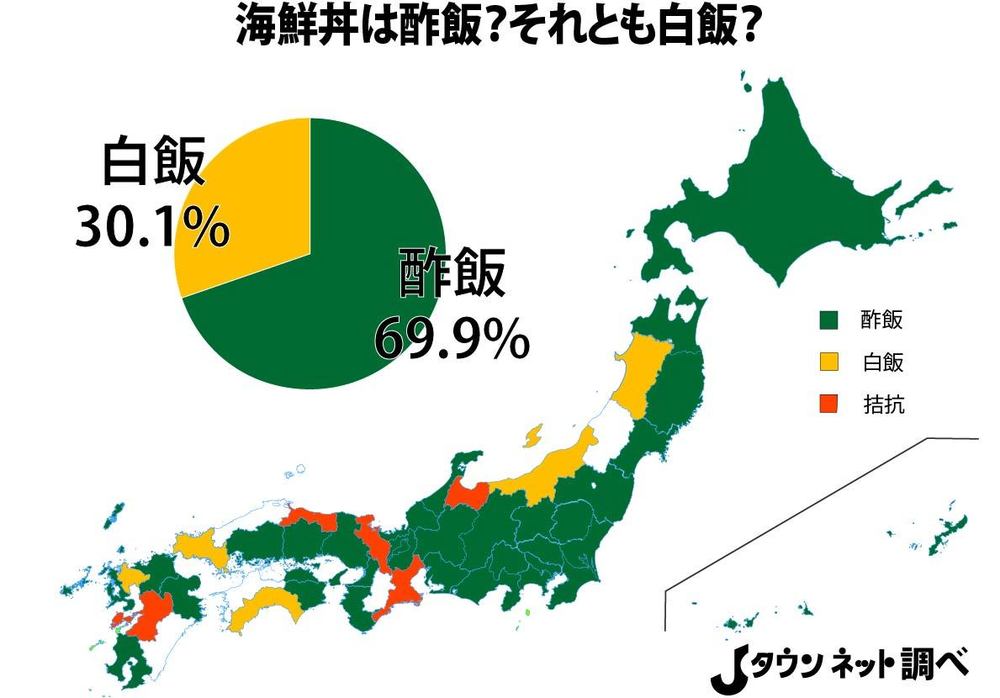 海鮮丼食わせる海沿いの店に行くと店によってどちらかが出るんで、結果を見てみたら拮抗してる県だった。