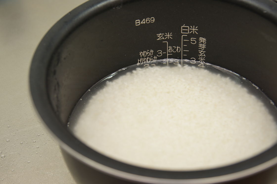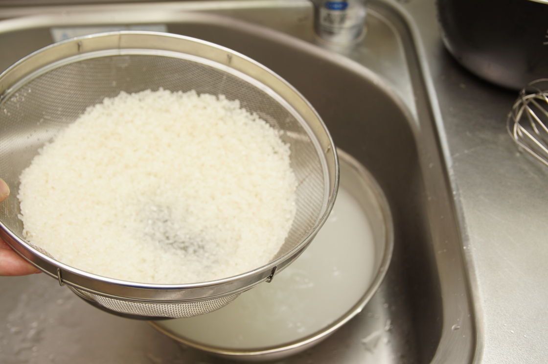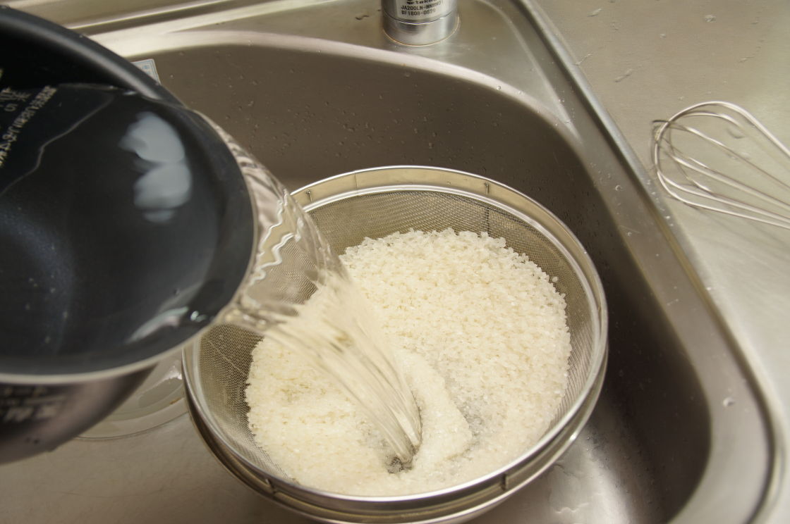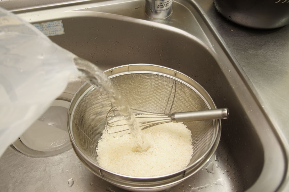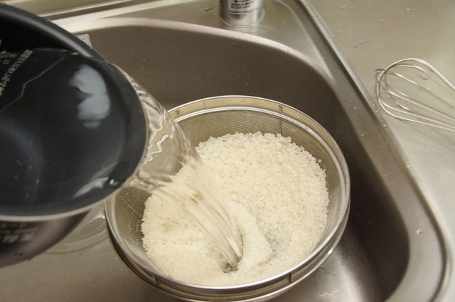 米は最初は水を入れたら、すぐに捨てる