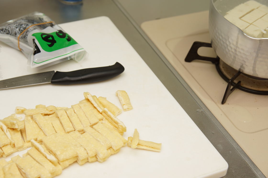 油揚げの油抜きなんて一瞬だし、サラダも袋入りじゃなくて野菜位切れば良いのに