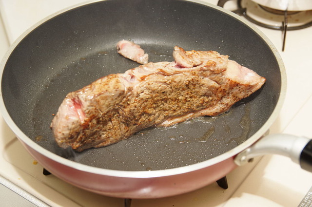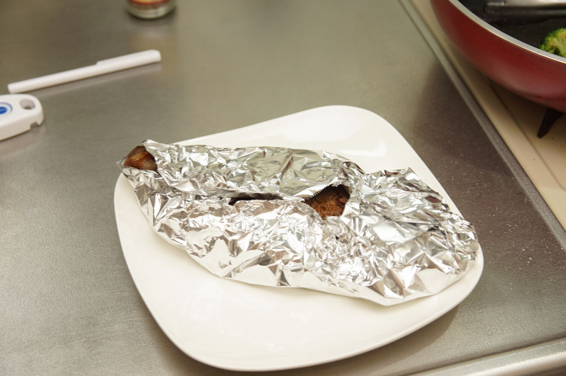 この低温でじっくりの焼き方なら、表面だけフライパンで焼き目つけてオーブンとかレンジとか放り込んだ方がブレなく確実な気がするがどうなんだろう?
