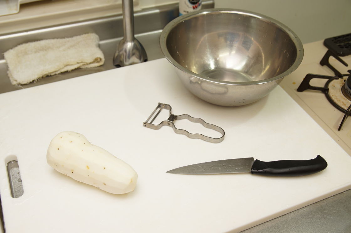 とろろ芋なんておろしがねでものの数十秒でおろせるだろ。もちろん皮むきなんてしない。