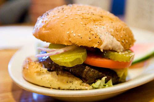 ピクルスの入ったハンバーガーは