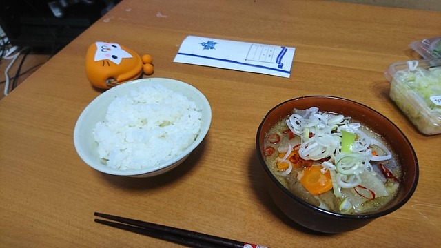 あとはよそって食すだけ 超シンプル豚汁定食 普段飯の写真なんて撮らないから不味そうに見えるがちゃんと美味かった。
