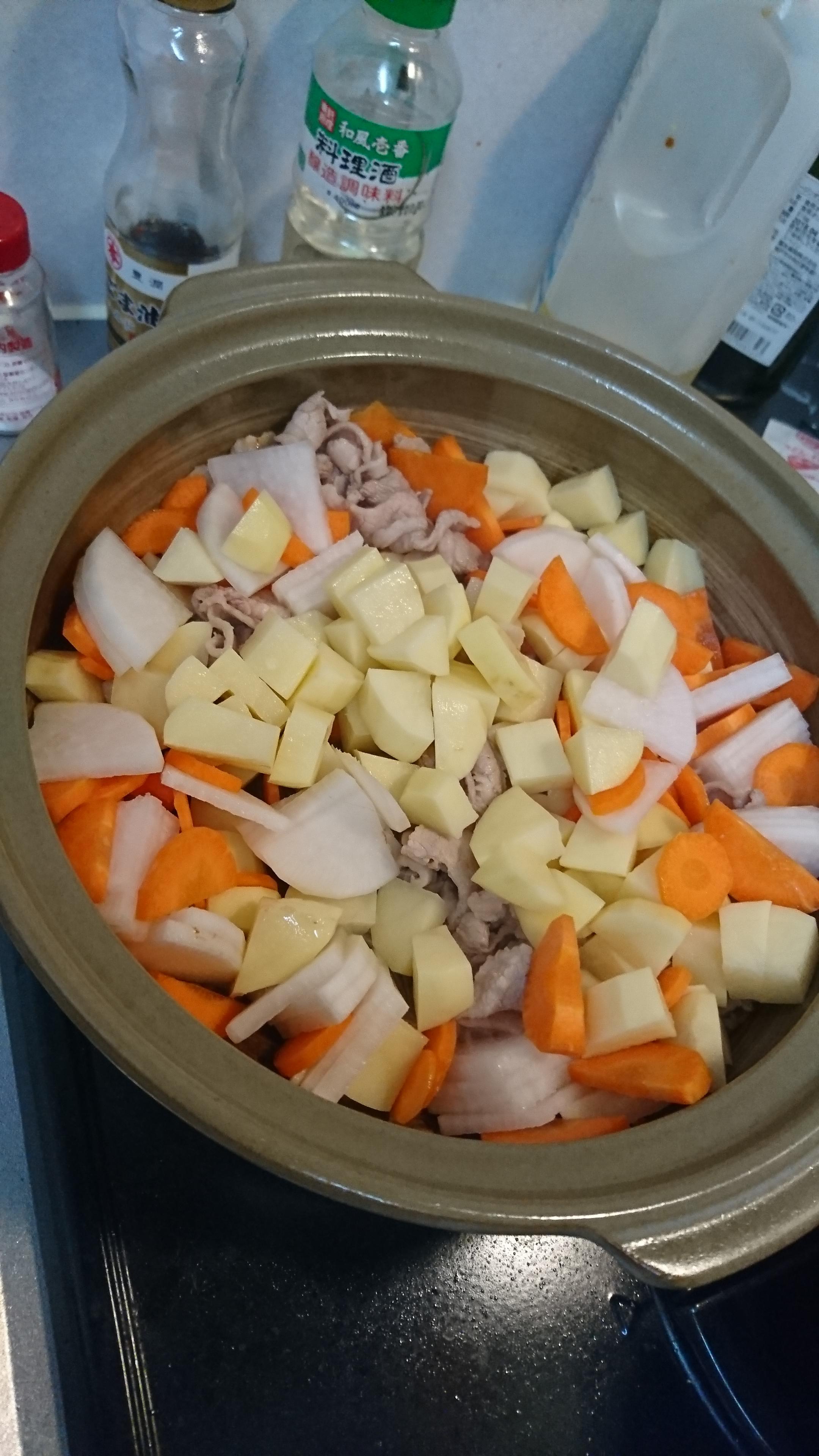 根物系だけ水から煮てあとは沸騰後で良い(つまり肉は後から)。