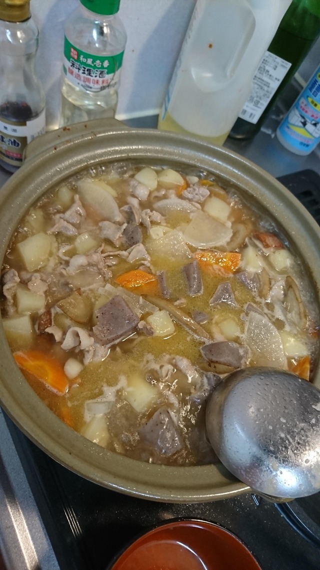 豚汁美味しそう!w 私は玉ねぎも入れるや コクが出て美味しいよ~