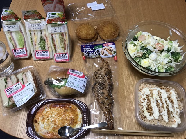 1枚目のサンドイッチ4つハンバーガー1つドリア?グラタン?だけだと思ってる奴いるけど、右下の奴揚げ玉のせてマヨかけたご飯だってよwこれだけで1合半ぐらいはあるだろ・・・