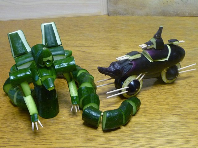両方夏野菜できゅうりは細くて速そうやしナスは太くて遅そうやからやな