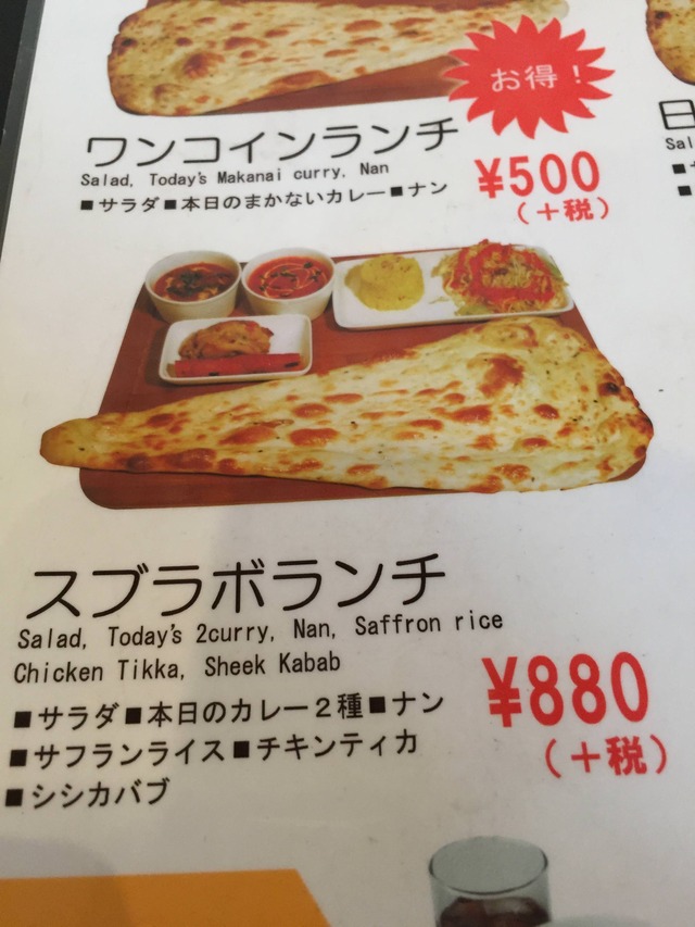>>5 とりあえずナン追加無料のランチ頼んだ 880円