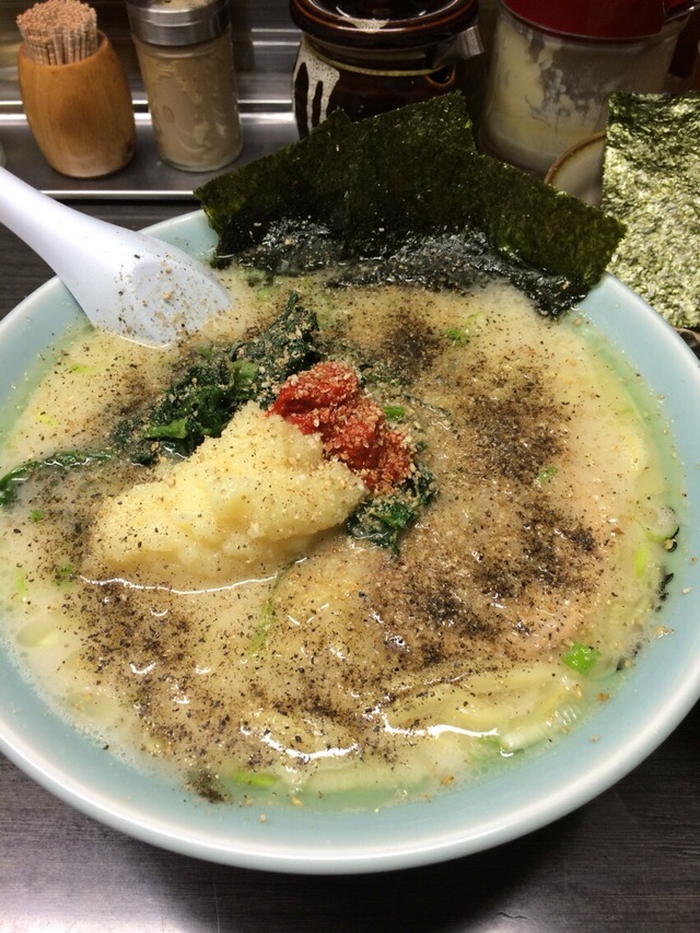 豚骨スープにほうれん草や海苔を合わせちゃう味障