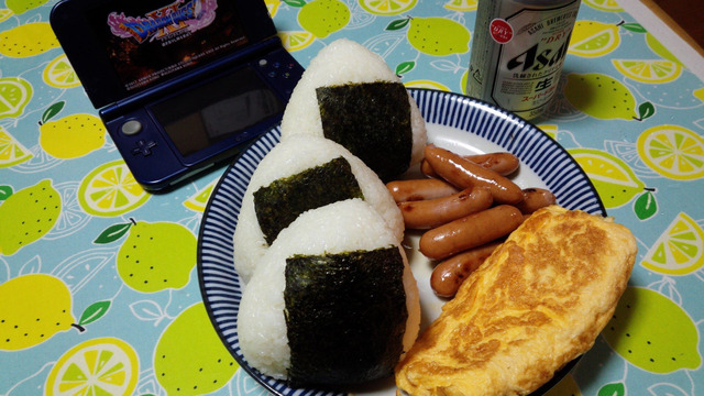 丸っこいおにぎりが本当に美味しそう…ゲームしながら夜中に食べたい