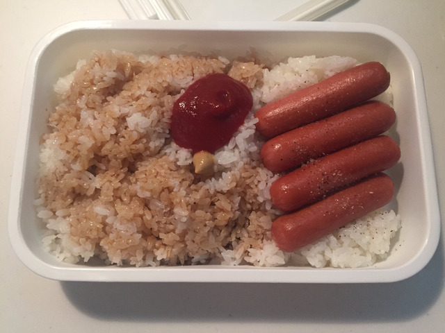 ウインナーと白飯とケチャップだけのドカ弁、なお精一杯の贅沢の模様