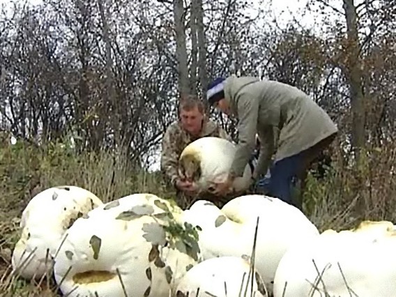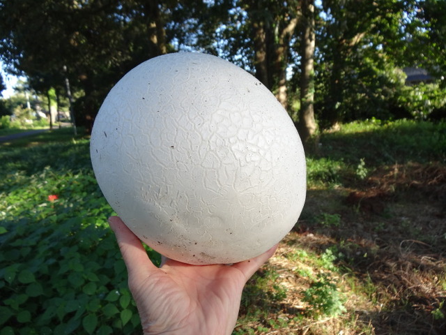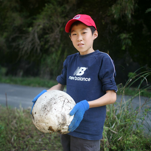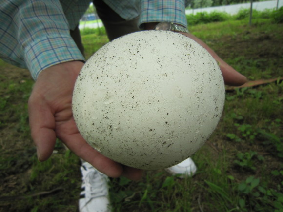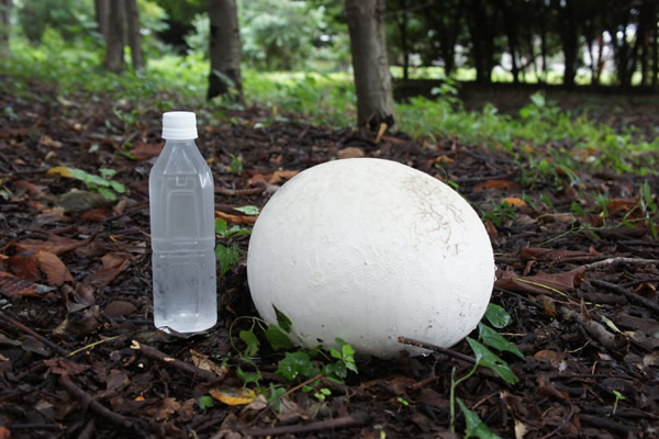 オニフスベ オニフスベ(鬼燻、鬼瘤、学名:Calvatia nipponica)はハラタケ科のキノコ。「フスベ(贅)」とはこぶ・いぼを意味する。別名:薮玉(ヤブダマ)、他にヤブタマゴ、キツネノヘダマ、テングノヘダマ、ホコリダケなど。江戸時代は、他のホコリタケ類とあわせ馬勃(バボツ)とも呼ばれた。 なお、従来はホコリタケ科オニフスベ属(Lanopila、後にLangermannia)とされていたが、分子系統学に基づく分析の結果、オニフスベ属は廃名とされてノウタケ属に組み込まれ、現在の分類に変更された。 https://ja.wikipedia.org/wiki/%E3%82%AA%E3%83%8B%E3%83%95%E3%82%B9%E3%83%99 Calvatia_nipponica