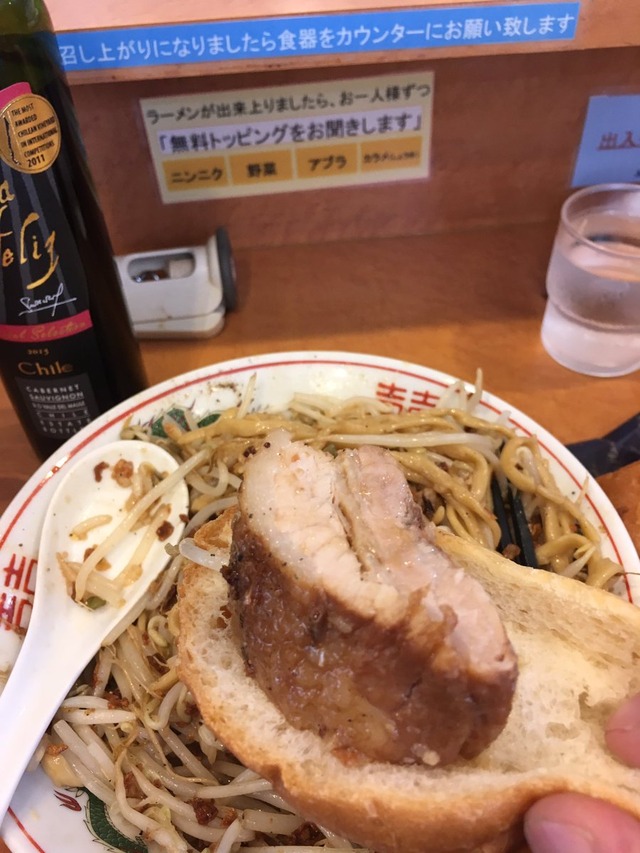 自分は、ラーメンを完食するのに四苦八苦の状態なので他の食べ物を持ち込むなんて考えられない。タッパ持ち込んで、チャーシュー持ち帰りたいくらい