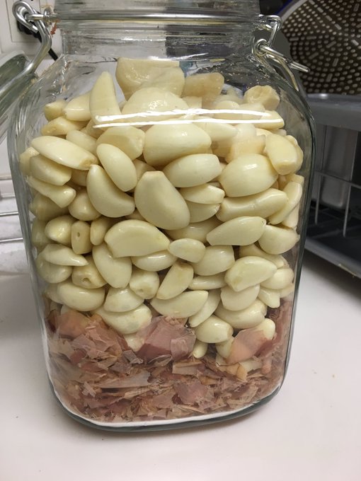 たまに乾燥にんにくと鷹の爪、鰹節、利尻昆布で醤油づけ作るがスゲー美味い、冷蔵で1年余裕でもつし。