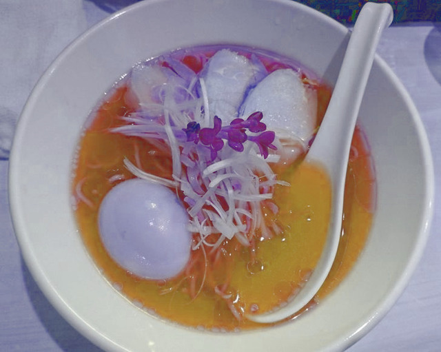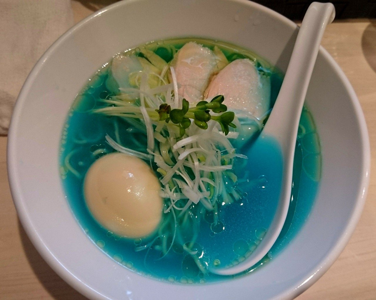 何故だろう…青いラーメンより紫の卵浮いてるラーメンの方が更に不味そうに見える…
