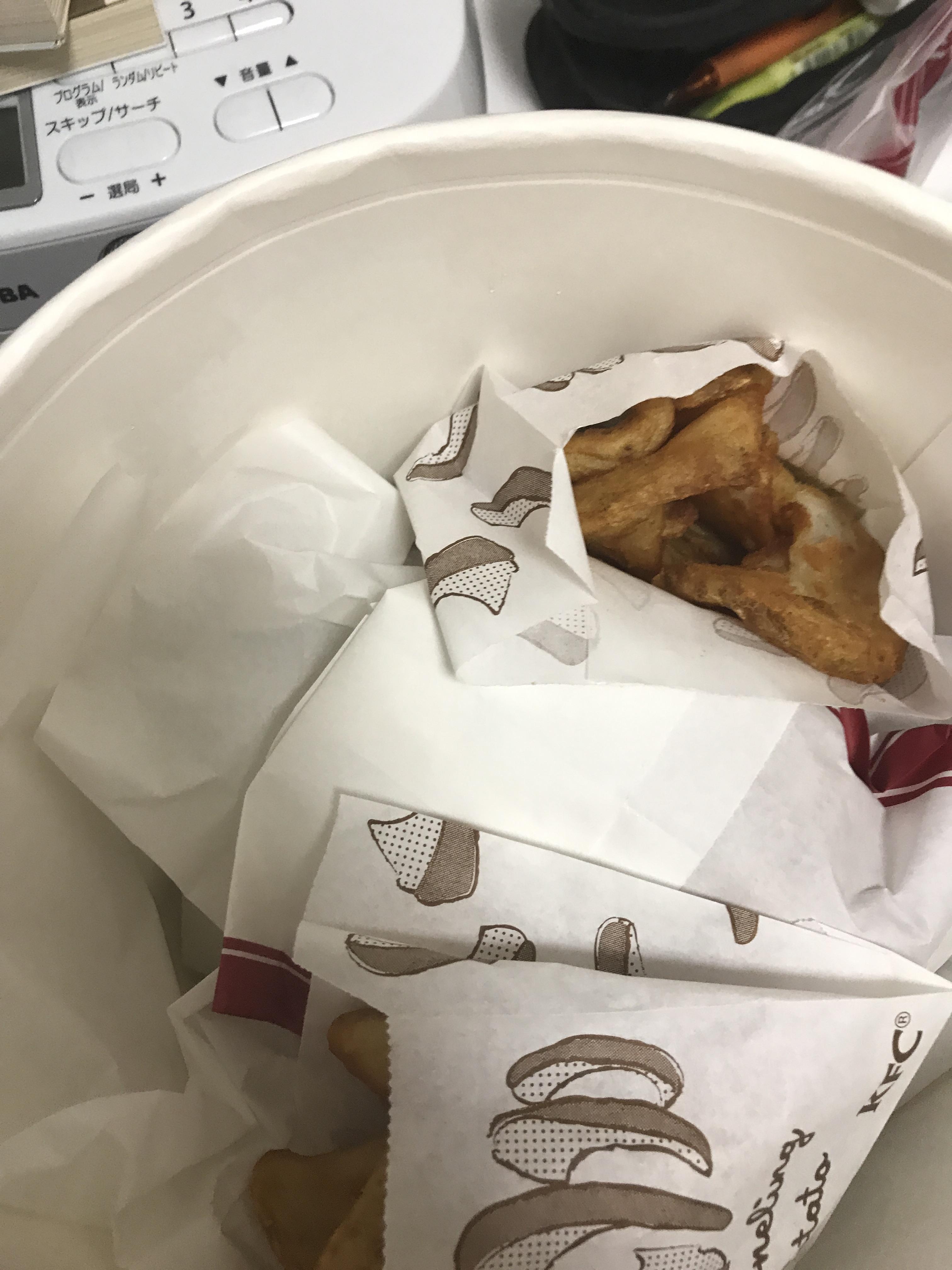 チキンの油がキツイって人は食パンを一緒に食べるといい、だいぶマシになるで。