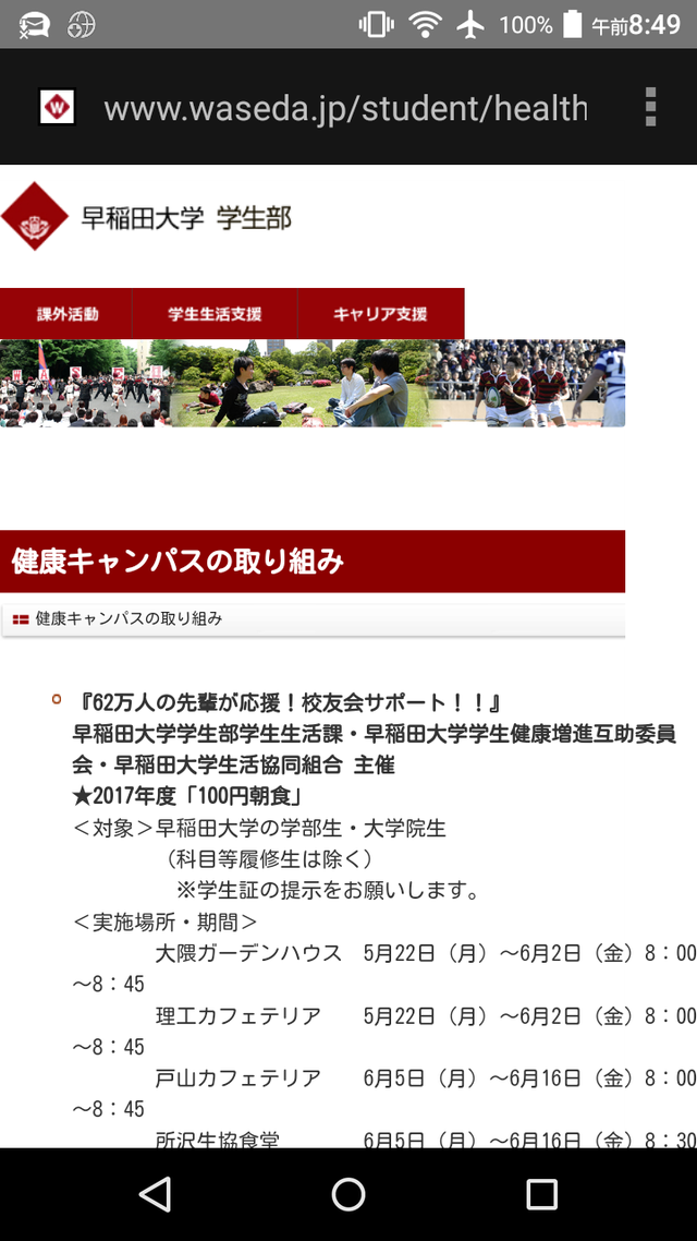 100円定食食わせるぐらいなら早稲田の学費減額してやれよw