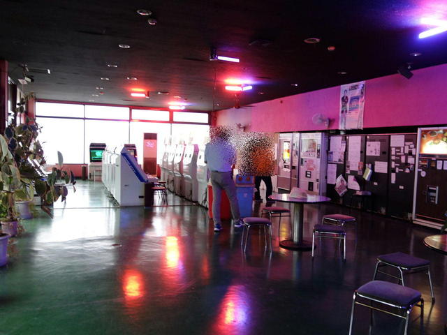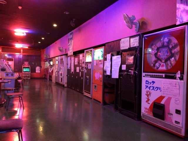 店内には「インベーダーゲーム」や「ストリートファイター」といったゲーム機が並び、昭和後期から平成初期のゲームセンターを想起させる。