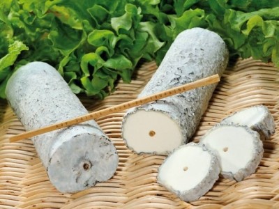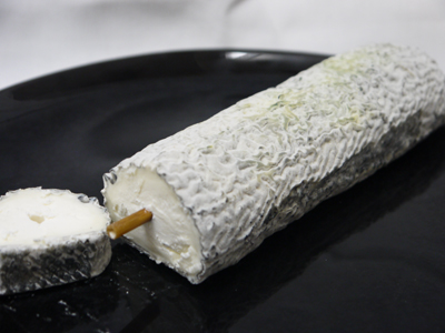 細長い円筒状の形をしていて、表皮には木炭の粉がまぶしてあるので黒くなっています。型崩れを防ぎ、空気を通すために中心に1本の麦わらが通してあり、この麦わらが一目でサント・モール・ド・トゥレーヌだとわかる特徴です。この麦わらはよく見ると文字が刻印されています。