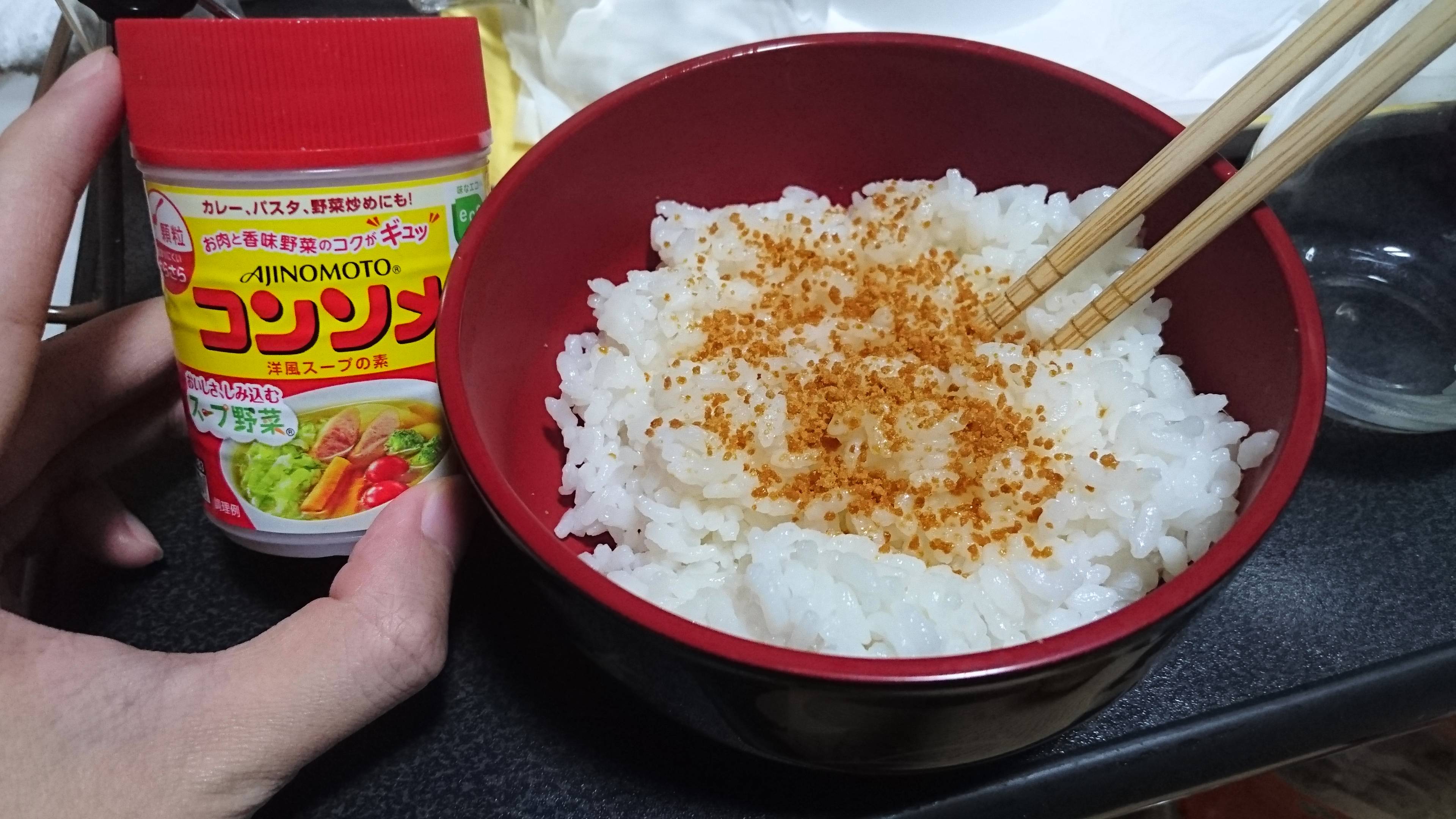 バターがあれば炒めてバターライスにするんだがマーガリン切れちった