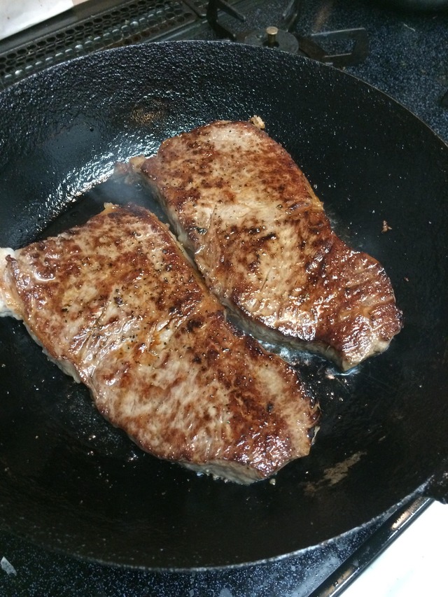強火で短時間両面→弱火でじっくり(ここでレア調整)