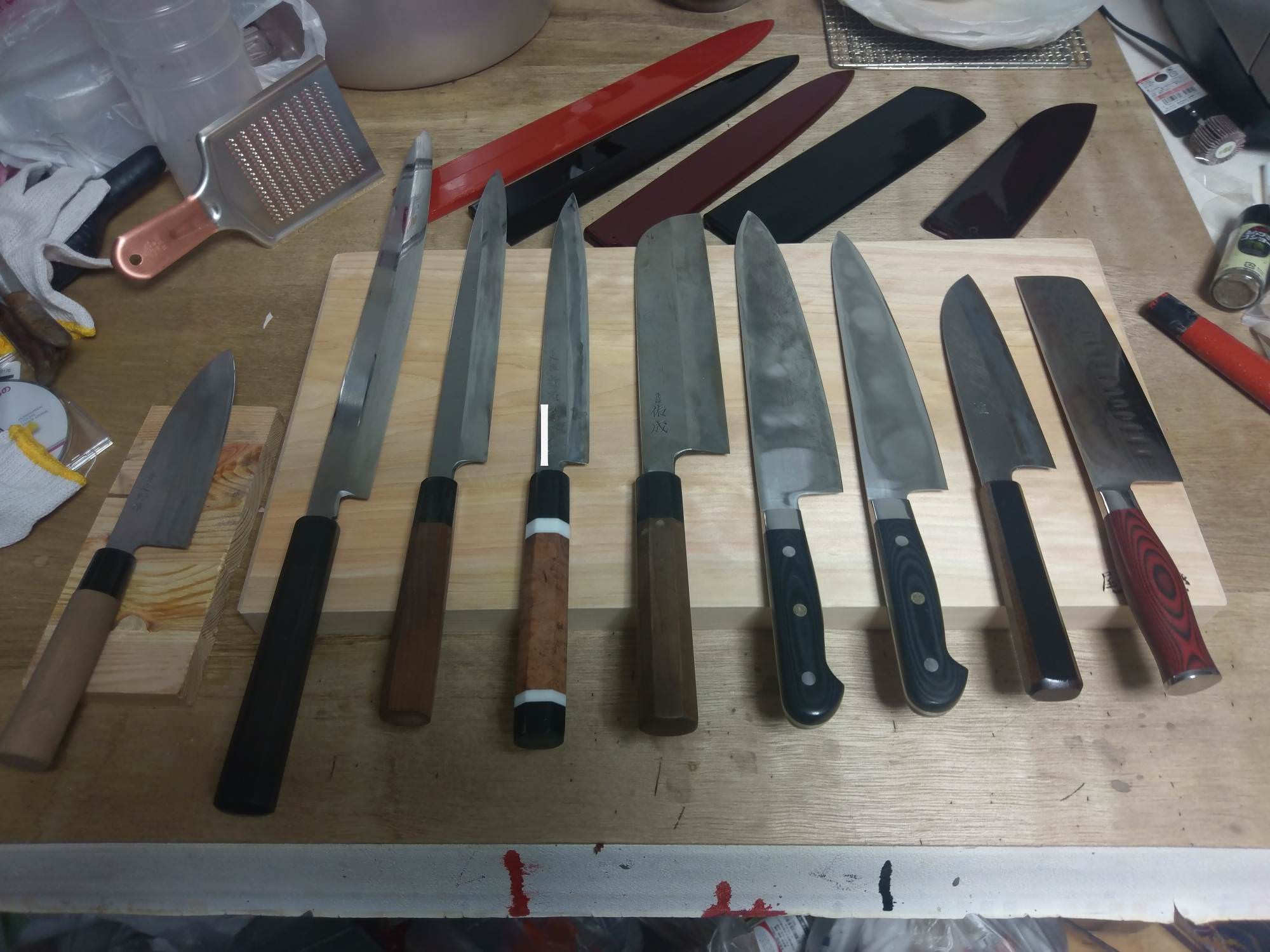 包丁を並べた机の状態じゃ難しいやろうな~