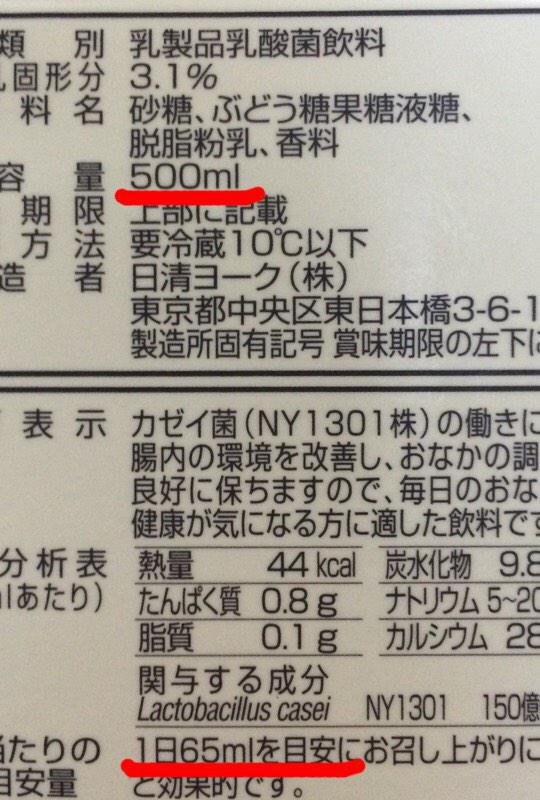 ▼「150億個(65ml)の生きた乳酸菌」と書かれている。もうこの時点でピンとくるかもしれない。