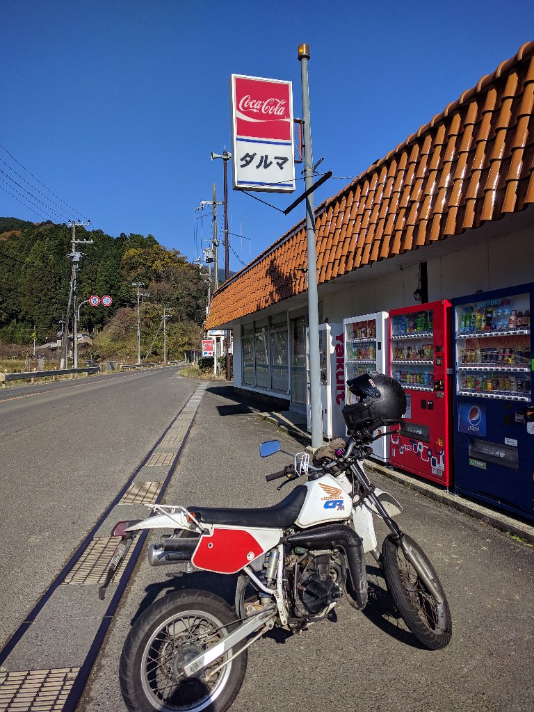 このバイク、原付なのか。自販機めぐりのツーリングとはずいぶん安上がりで達成感ありそう。真似してみようかな