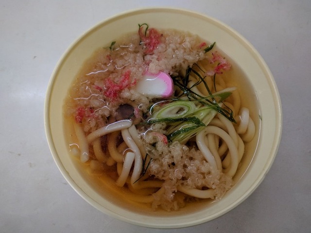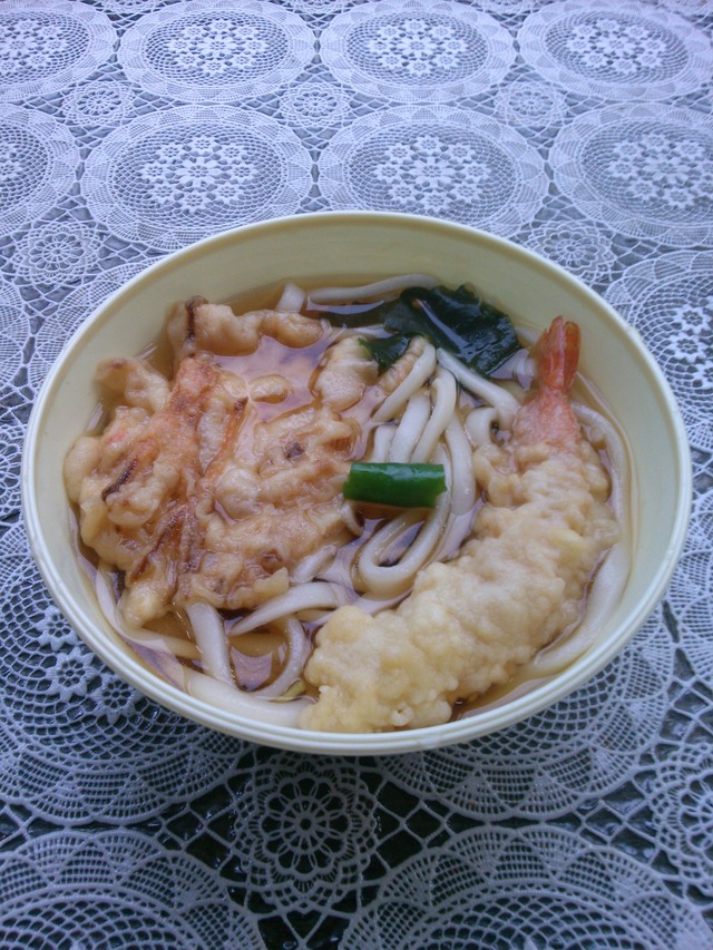 鉄剣タローの天ぷらうどん300円数種類の天ぷらが入っている