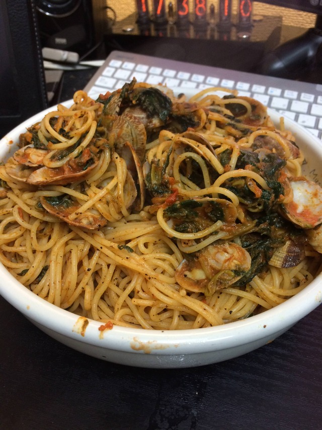 クソ不味いんだが この前作った キノコとほうれん草のパスタのほうが100倍美味いし安かった あさり死ね