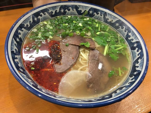 豚骨ならぬ牛骨ラーメンだよ蘭州ラーメンは。そして、スープは日本のラーメンに比べると本当に薄味、ラーメン好きならほぼ物足りなく感じると思う。