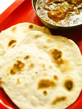 ナンとかパンとか食べる国って、一食のバランスが、パン(ナン):おかず(カレー)=4:1くらいの割合だったりする。おなかのほとんどは粉もんで埋めるんよ。(いいレストラン除く)