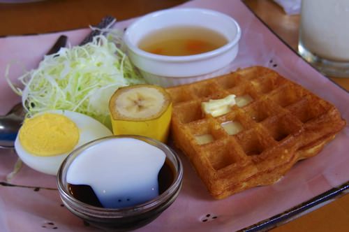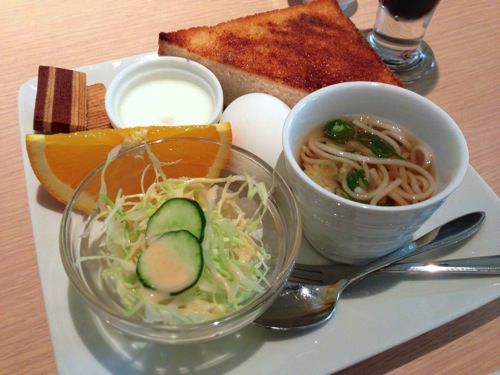 ワイの住んどる辺りは、午前中はコーヒーにトーストとミニサラダ&ゆで卵がサービスで付いてきて、100円追加で払えば定食になるって感じやわ