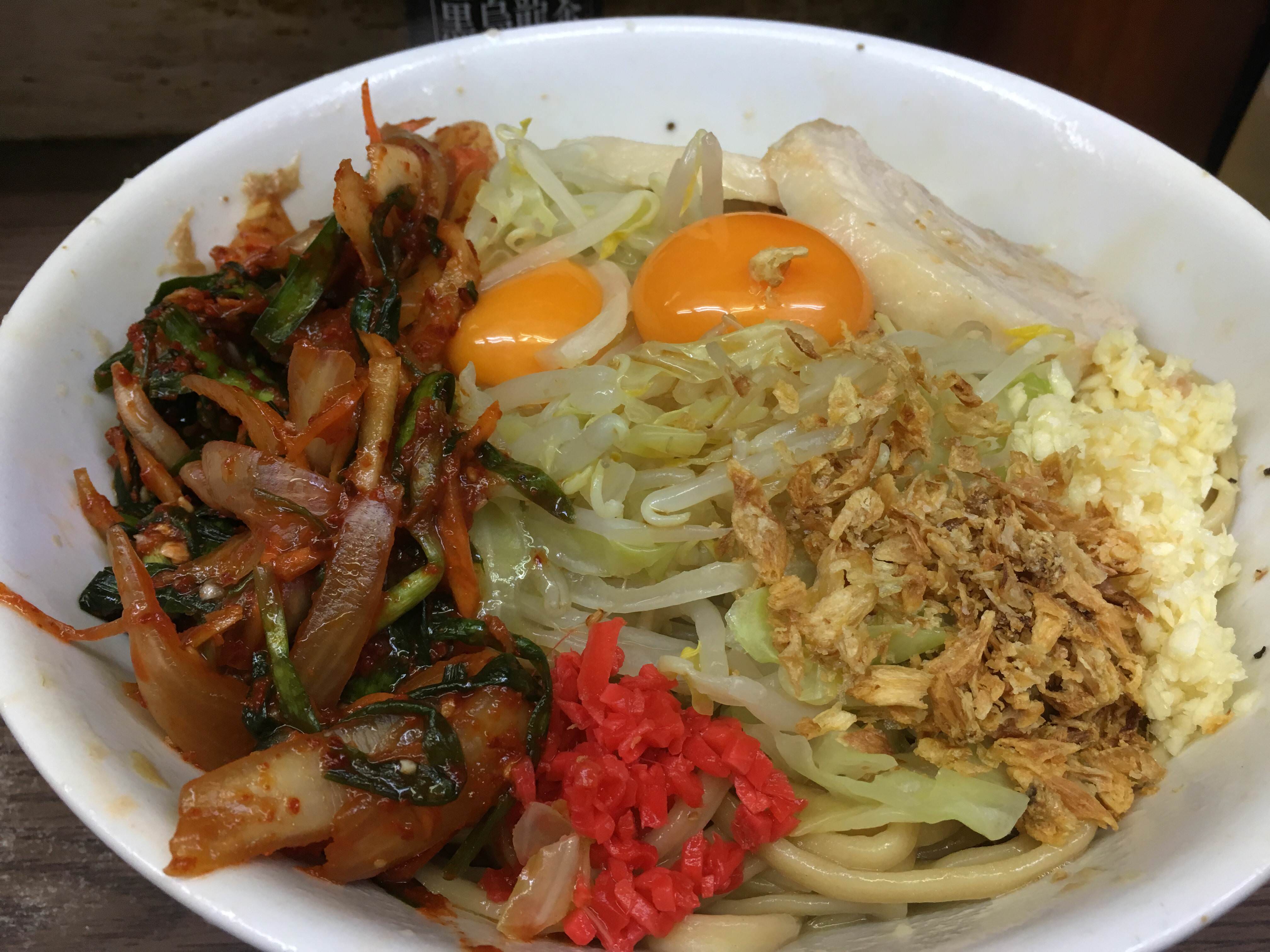 調理方法は、シンプルイズベスト、軽く茹でただけだ。しかしこの味もへったくれもない茹で野菜が二郎のしょっぱいスープをくぐらすとなんとニンニク醤油に漬けた漬物的な旨さになるのだ。太麺もさすがに芯まではスープに浸かってないので、いわば漬物とご飯を食べるように、驚くほどにズバズバと食が進む。