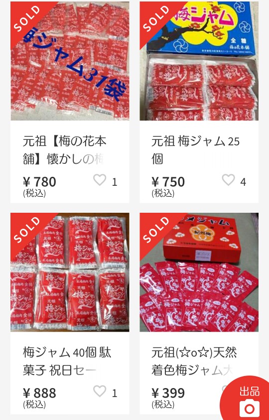 長年親しまれてきた駄菓子「梅ジャム」が昨年末に製造終了したことを受け、フリマアプリ「メルカリ」やオークションサイト「ヤフオク!」には、早くも「梅ジャム」の高額出品が相次いでいる。