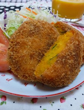 カボチャコロッケでご飯食べる星人とは断固戦うで