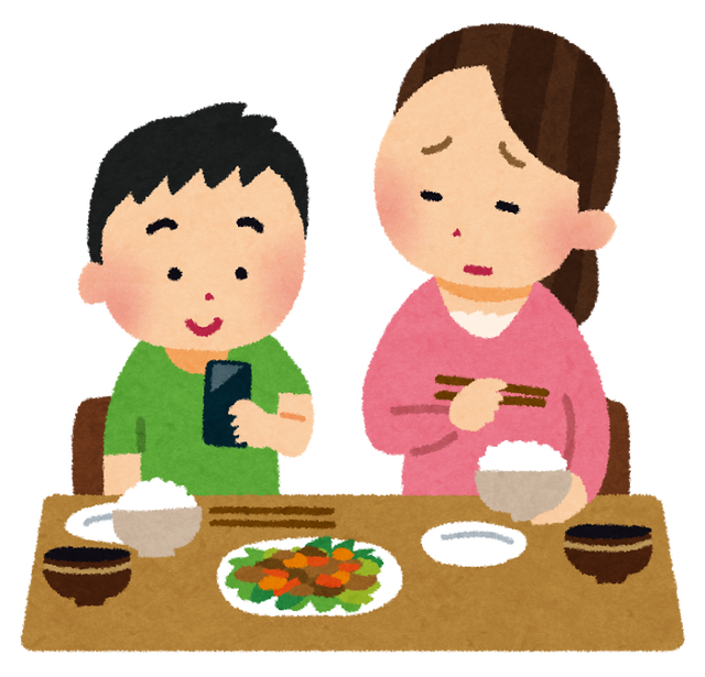 スマホ見ながら食事なんて、マナー、躾受けてきてないのだろうな。