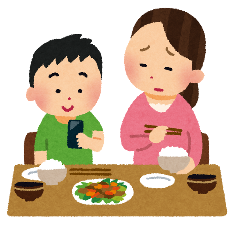 分からんでもないけど流石に食事中に二人して無言でスマホいじってるのはやばい